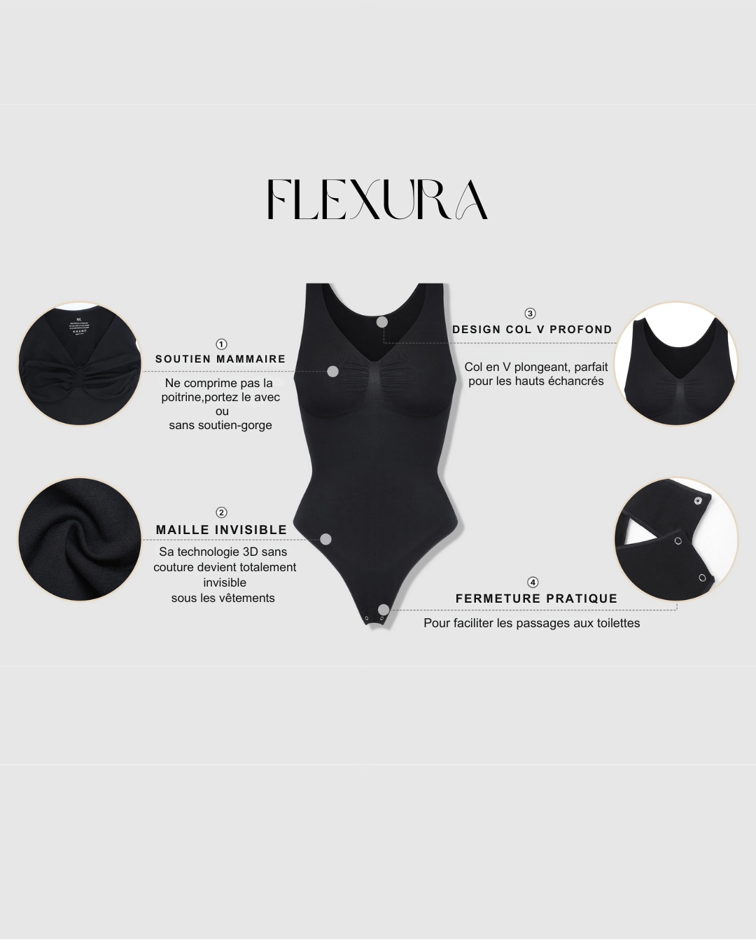 Enfilez et affinez, avec un body qui transforme vos courbes et sublime vos traits pour uen confiance retrouvée.